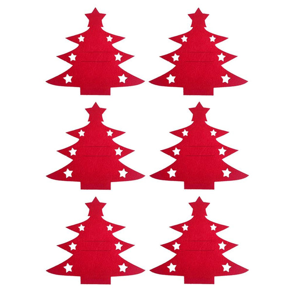 6pcs /Pack Christmas Decorations Christmas Tree Shape Knife and Fork Sleeve Tableware Bag(Red)