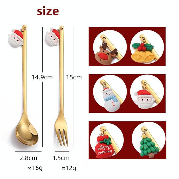 6pcs /Pack Christmas Mixing Spoon Fruit Fork With Pendant Flatware, Style: Spoon