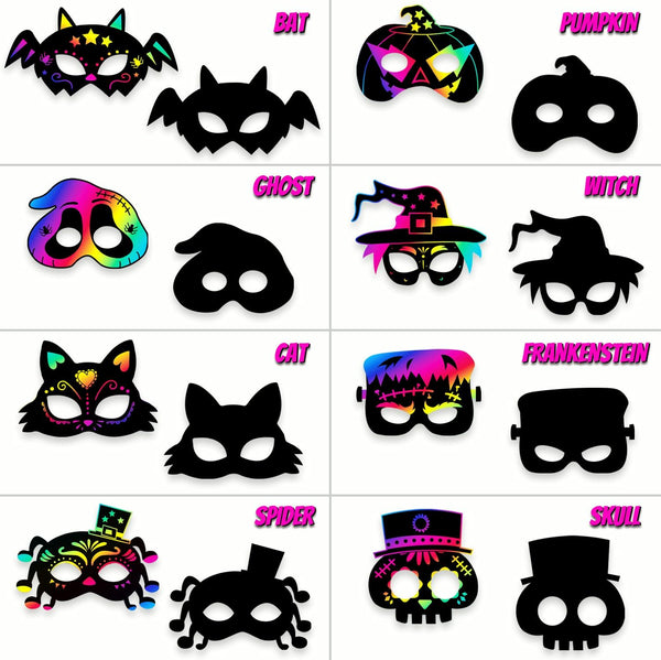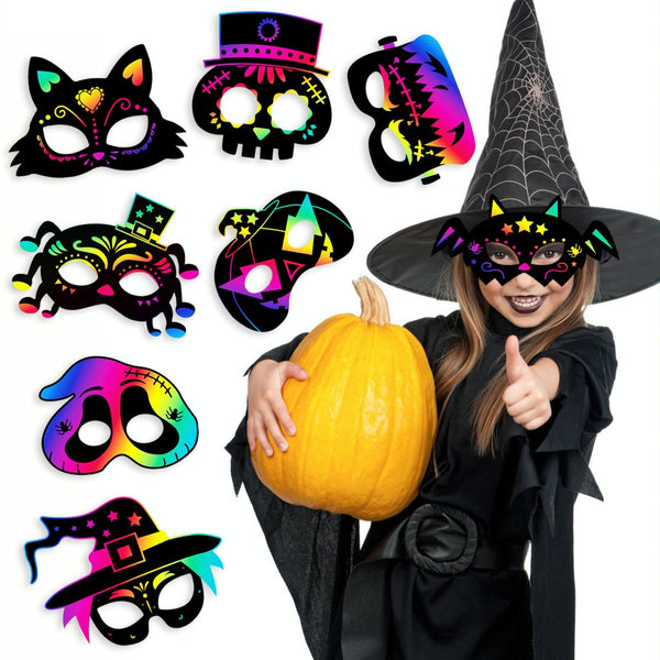8 Pcs/Set Halloween Scratch Paper Mask Toys for Children