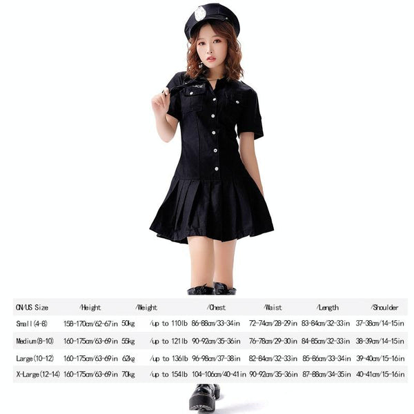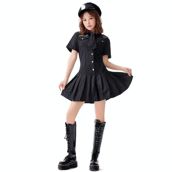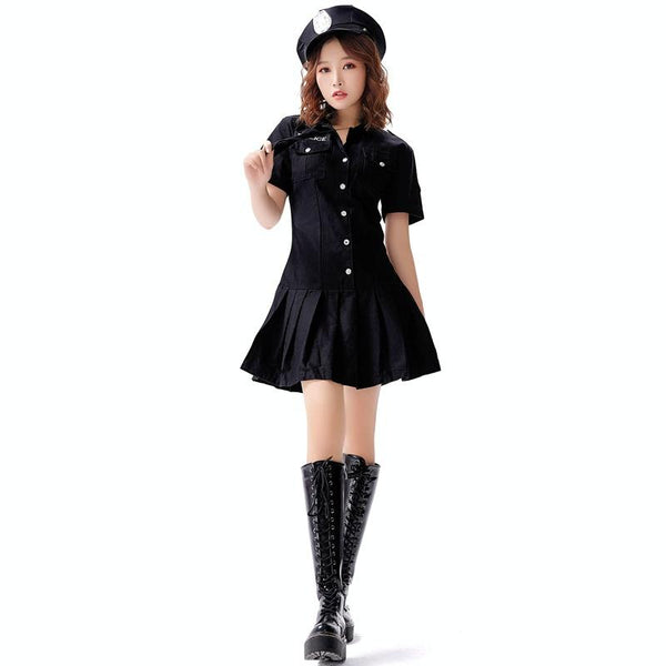 8331 Cotton Tie Policewoman Costume Halloween Bar Nightclub Uniform Set, Size: M(Black)