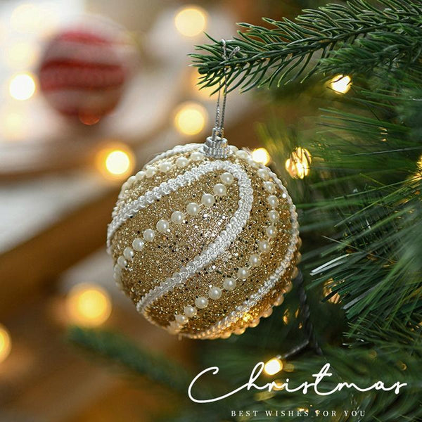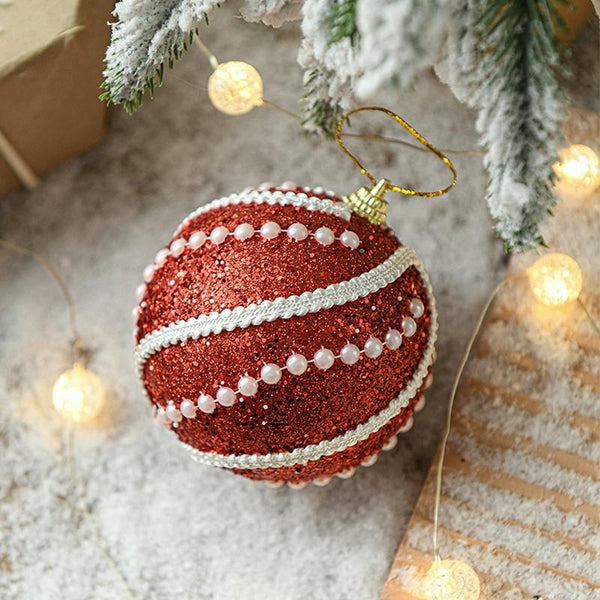 8cm Christmas Ball Christmas Tree Decoration Sequin Pearl Ball Hanging Ornament(Pink)