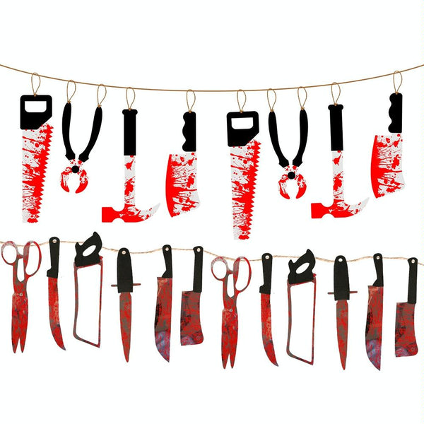 8pcs +12pcs Halloween Imitation Blood Knife Pendant Decorative Flag Haunted House Door Curtain