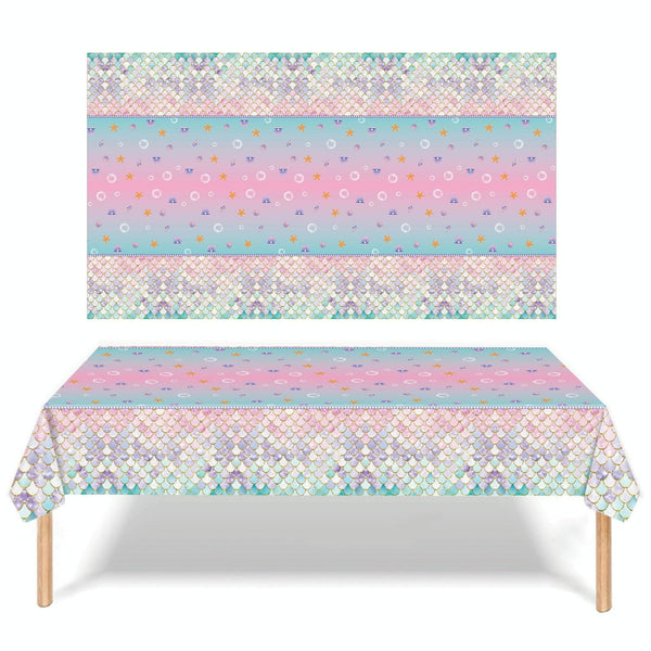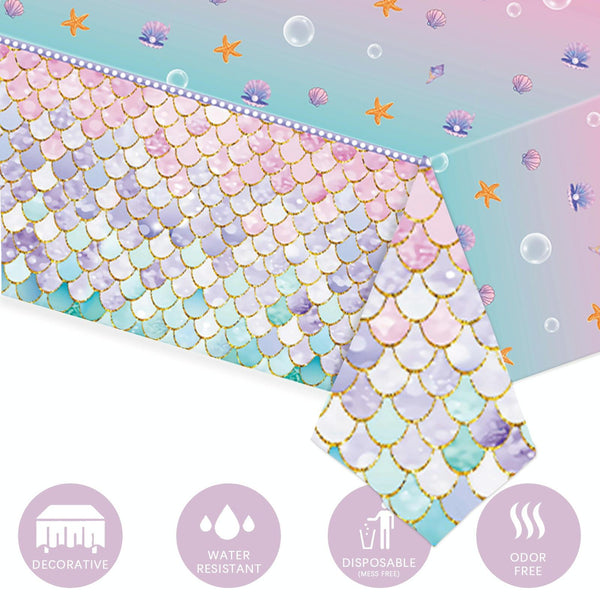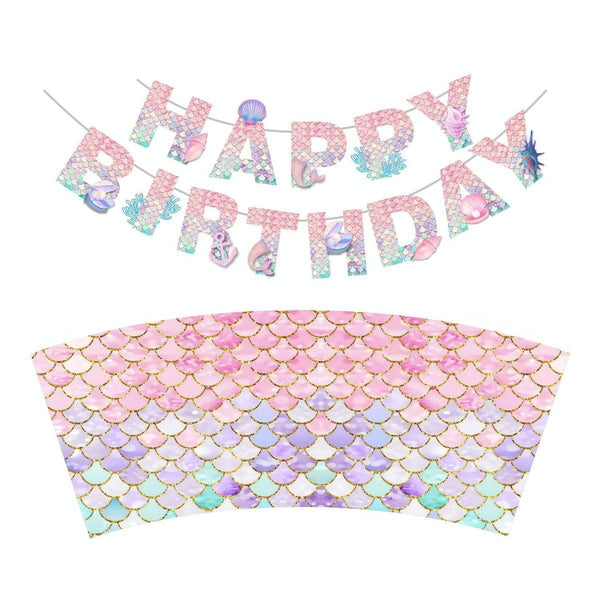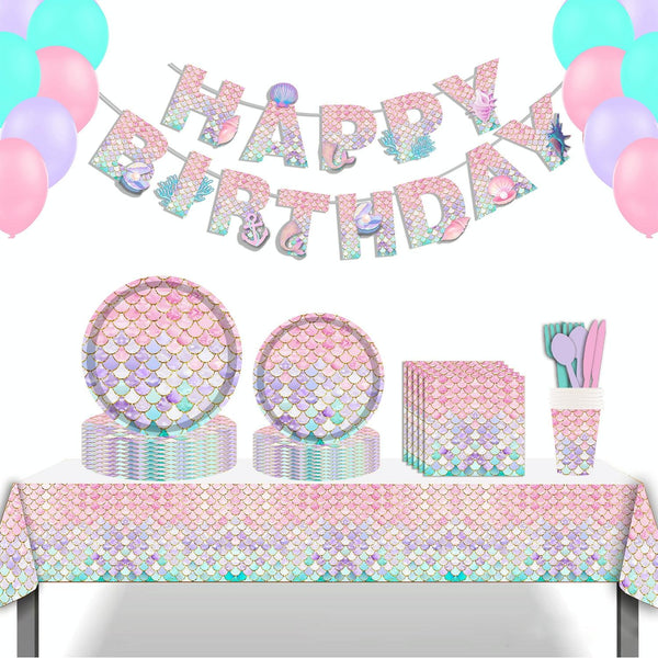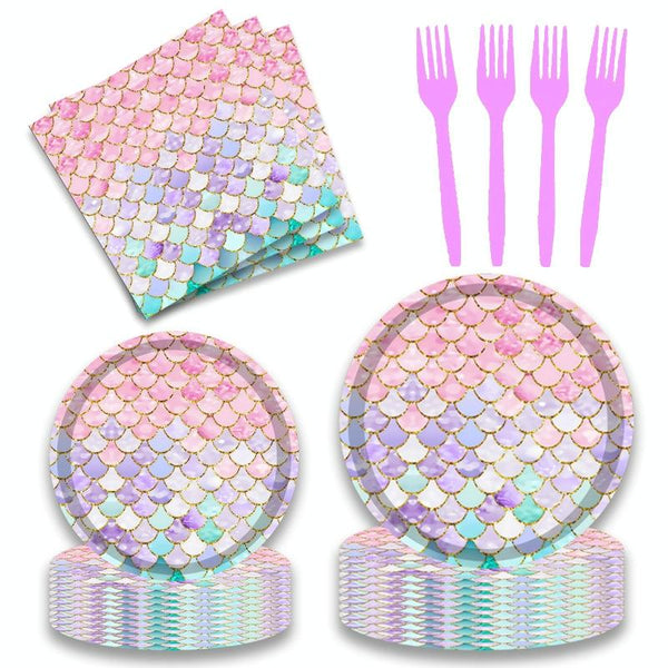 9 In 1 Fish Scale Mermaid Birthday Party Supplies Tissue Paper Plate Cutlery Set(16 People Suit)