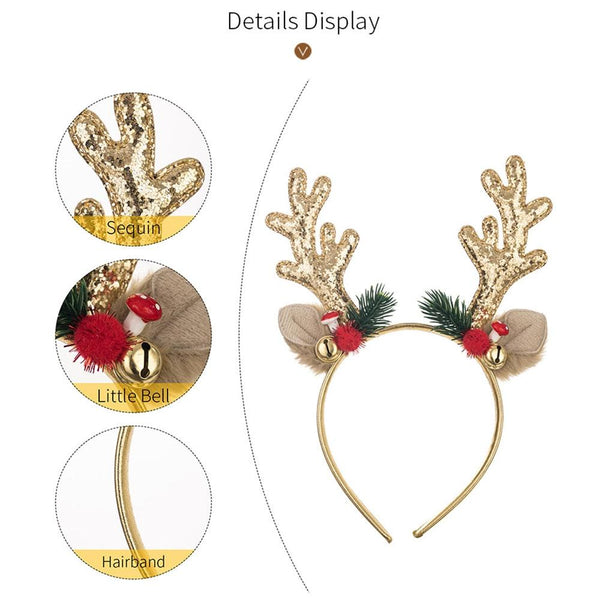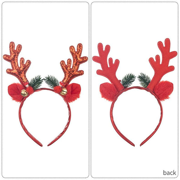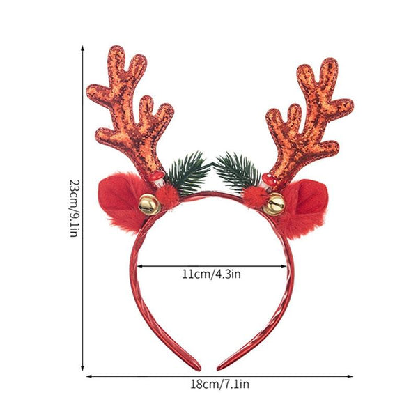 Bell Antler Headdress Christmas Ball Party Decoration Headband(Red)
