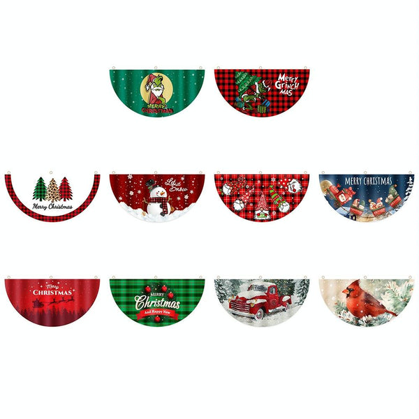 Cartoon Printed Outdoor Fan-shaped Hanging Flag Christmas Decorations, Style: Deer Cart