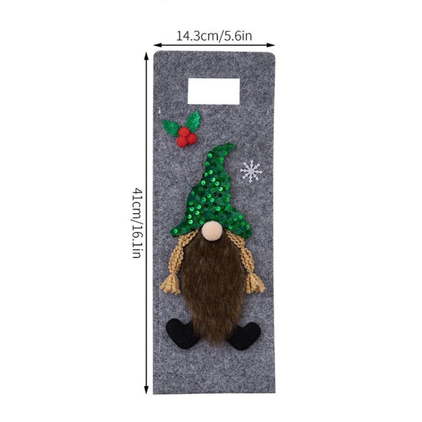 Christmas Cartoon Wine Bottle Cover Holiday Party Decoration Gift Bag(Black)