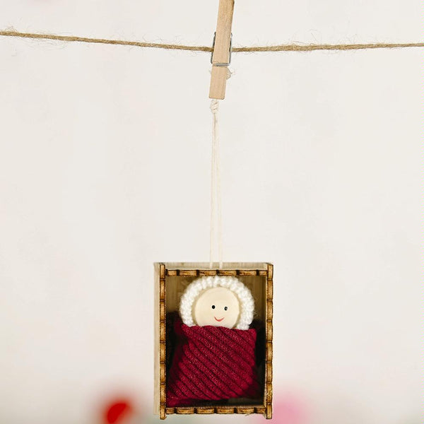 Christmas Celebration Supplies Wooden Box Small Doll Pendant Children Gift Small Doll Pendant Tree Pendant(Red Wine)