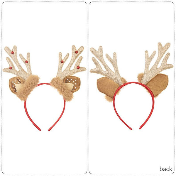Christmas Deer Antler Plush Headband Festival Party Makeup Props(Gold)