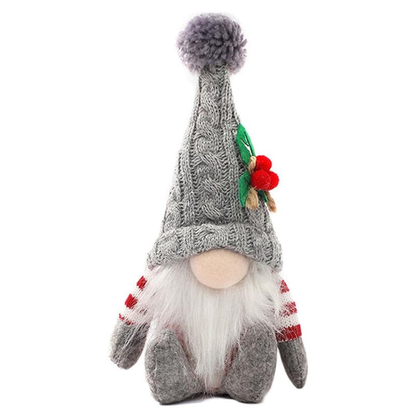 Christmas Doll Knit Hat Sitting Gnome Plush Ornament Decoration Christmas Knit Hat Figurine(Grey)