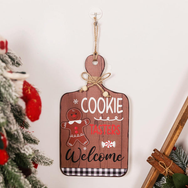 Christmas Gingerbread Man Decoration Wooden Sign Ornaments Store Welcome Pendant(Brown)