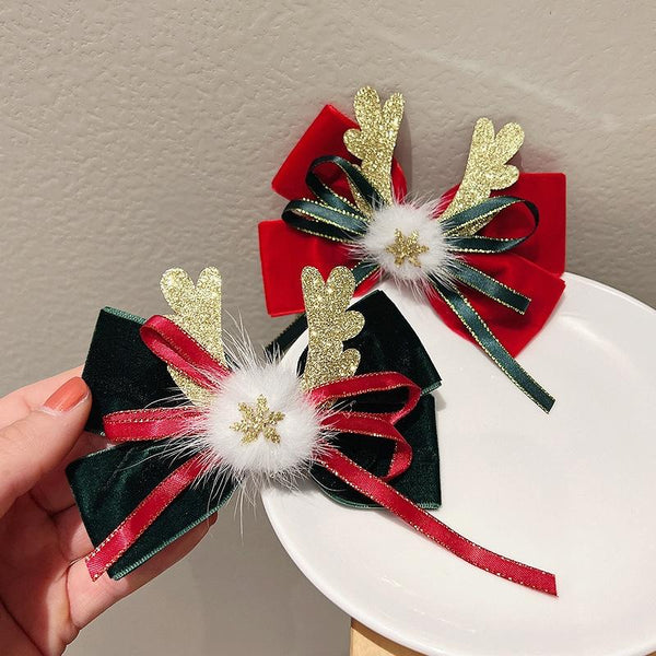 Christmas Gold Velvet Headdress Duckbill Clip, Color: LD113 Red