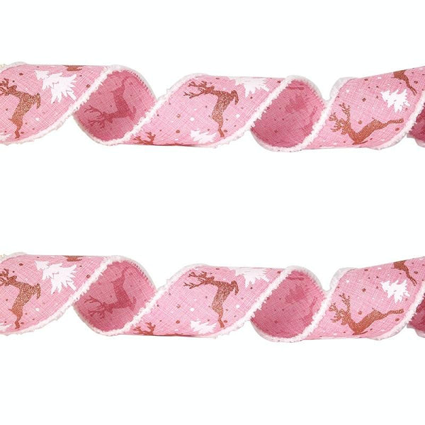 Christmas Imitation Hemp Ribbon Decoration With Wire, Length: 2M Pink White Burrs