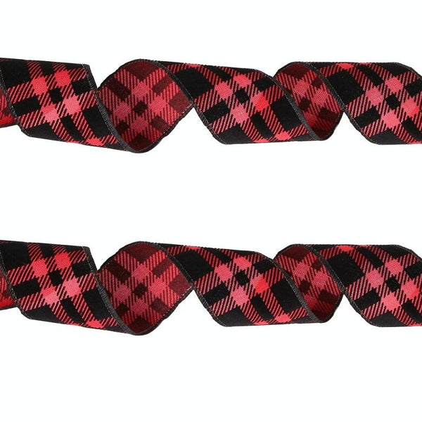 Christmas Imitation Hemp Ribbon Decoration With Wire, Length: 4M Black Red Grid