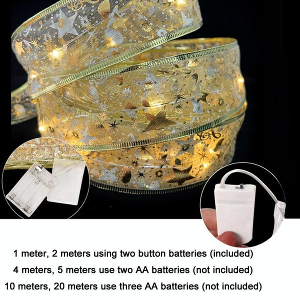 Christmas LED Lights Bronzing Double Ribbon String Lights, Specification: 10m(Gold Red Color Light)