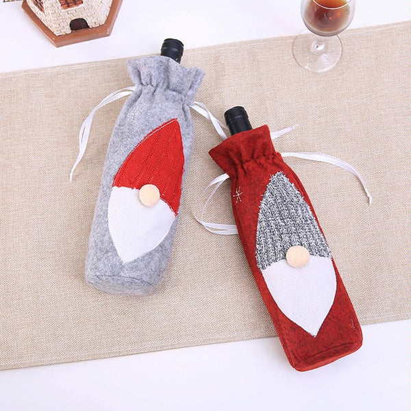 Christmas Machine Embroidered Faceless Old Man Wine Bottle Bags Table Decorations(Grey)