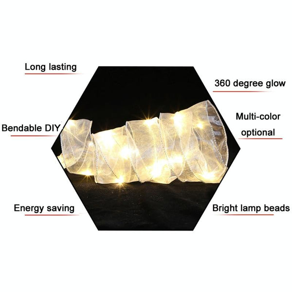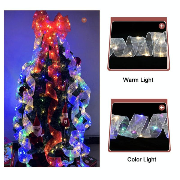 Christmas Ornament Double Light Board Yarn Ribbon String Lights, Specification: 20m(Silver Warm Light)