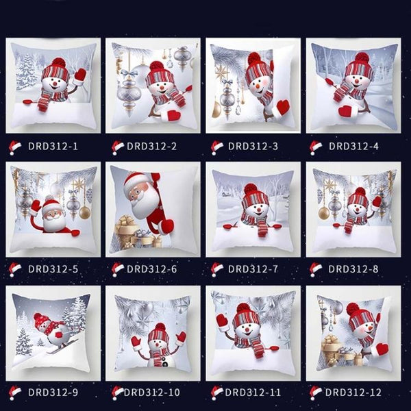 ChristmasPeach Skin Sofa Pillowcase Cartoon Living Room Bedroom Pillowcase Without Pillow Core(Snowman 1)