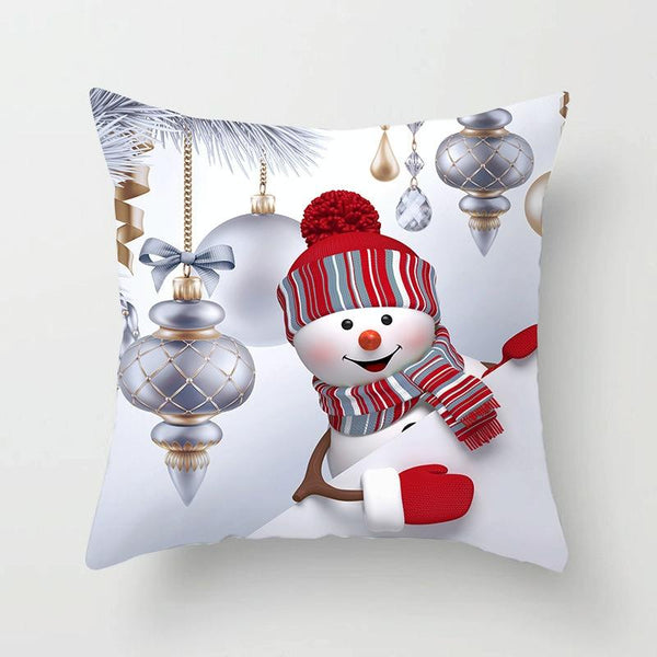 ChristmasPeach Skin Sofa Pillowcase Cartoon Living Room Bedroom Pillowcase Without Pillow Core(Snowman 2)
