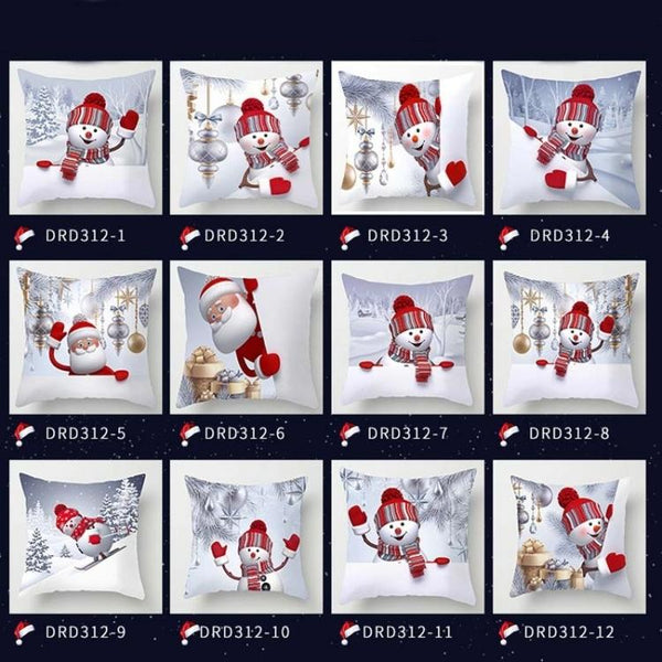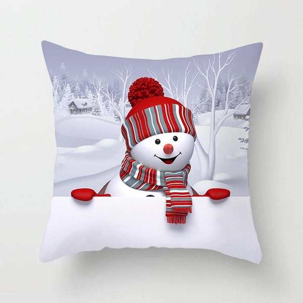 ChristmasPeach Skin Sofa Pillowcase Cartoon Living Room Bedroom Pillowcase Without Pillow Core(Snowman 7)
