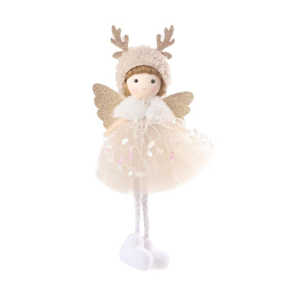 Christmas Tree Pendant Beaded Saree Angel Girl Hanging Decoration Children Cute Doll Gift(Beige)