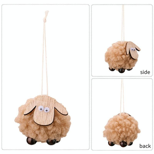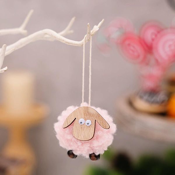 Christmas Tree Wooden Lambskin Lamb Pendant Holiday Decorations(Pink)