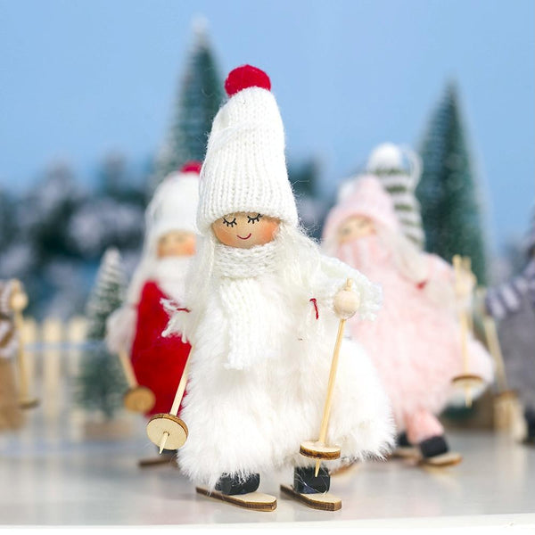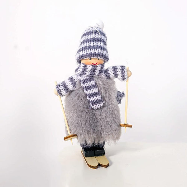 Christmas Wool Plush Doll Ski Girl Decorative Pendant(Grey)