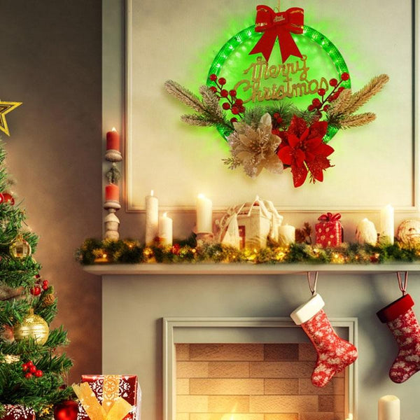 Christmas Wreath Timing Lighting Lights Door Decorations Pine Needle Ornaments Showcase(Golden Flower)