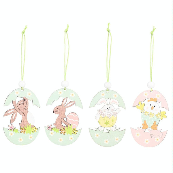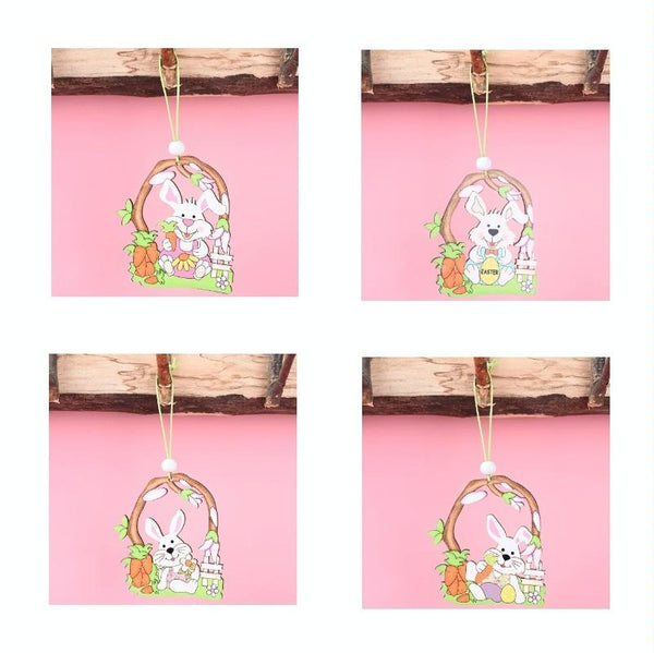 Easter Wooden Pendants Festive Atmosphere Decorative Items(Purple Pants Take Carrot Rabbit)