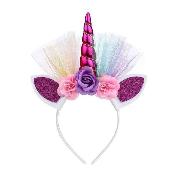 F006 Cartoon Headband Children Birthday Festival Party Hair Accessories(Rose Red 2)