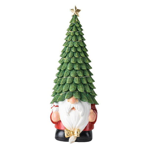 Glowing Christmas Tree Dwarf Ornament Home Christmas Resin Holiday Scene Decoration(Green)