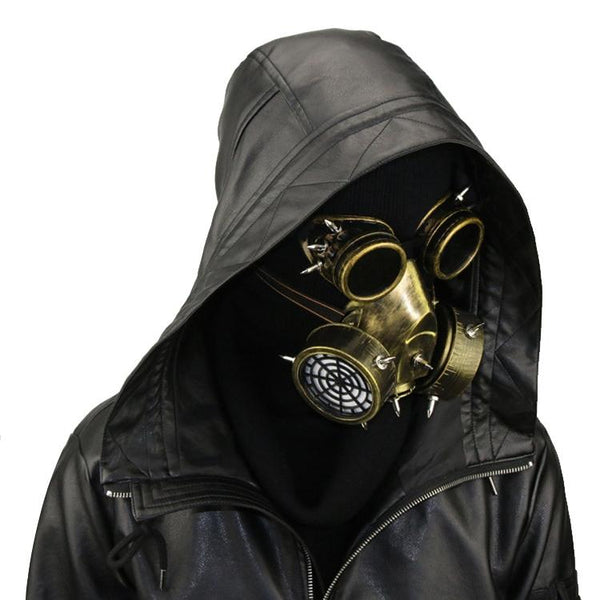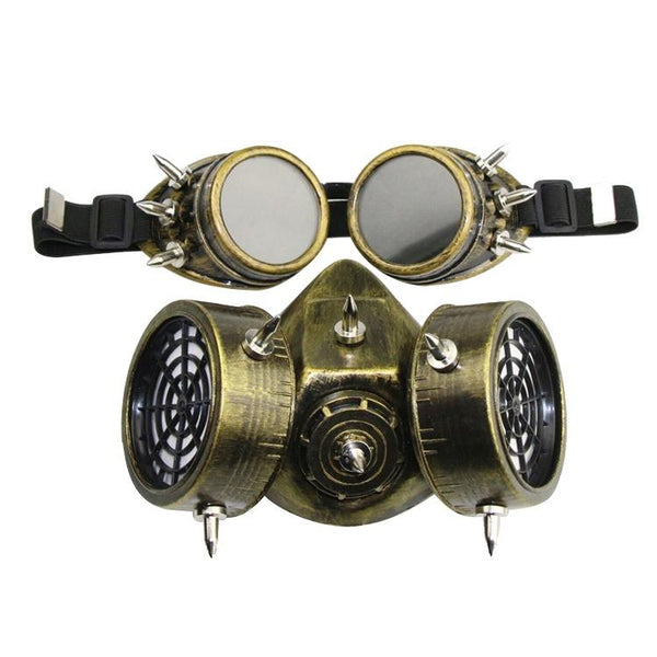 GM002 Halloween Dress Up Props Punk Style Gas Mask + Goggles Set(Gold)