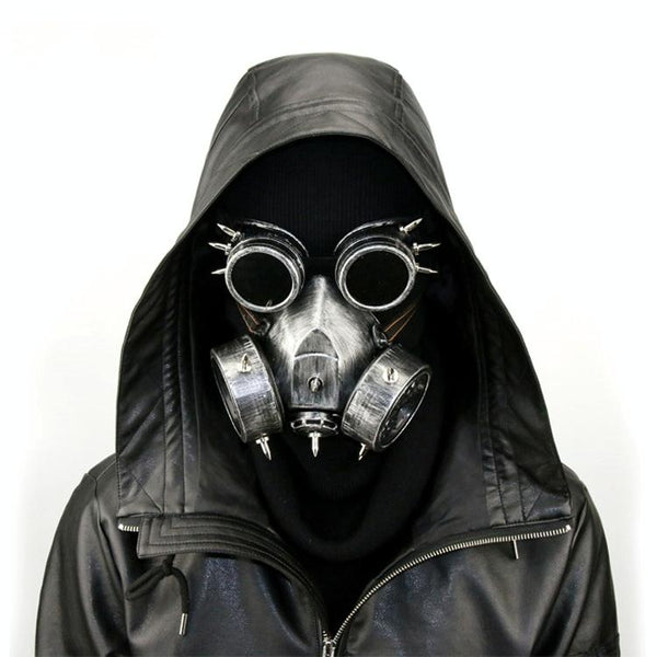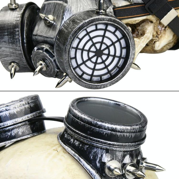 GM002 Halloween Dress Up Props Punk Style Gas Mask + Goggles Set(Silver)