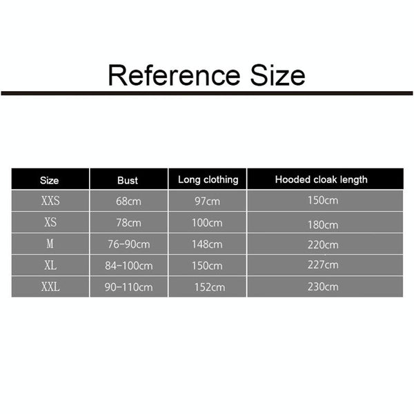 1: Size:XXL, Bust: 90-110cm, Clothes Long: 152cm, Cloak Length:230cm