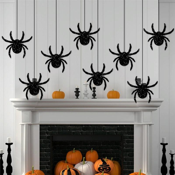 Halloween Decoration Wall Stickers Hanging Pendant Party Horror Banner Decoration, Style: 12pcs Spider Cards + Dots Glue