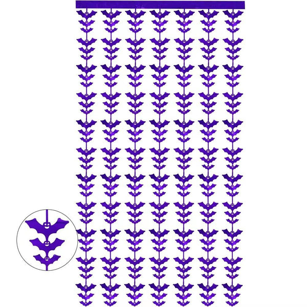 Halloween Decorative Bat String Flag Door Curtain Party Scene Layout Props(Purple)