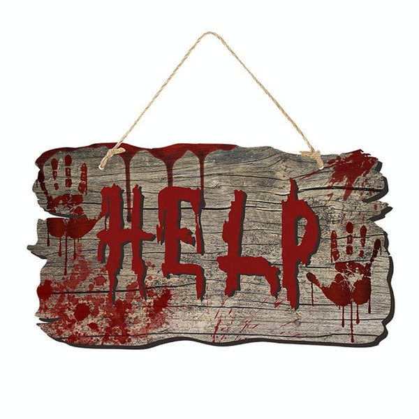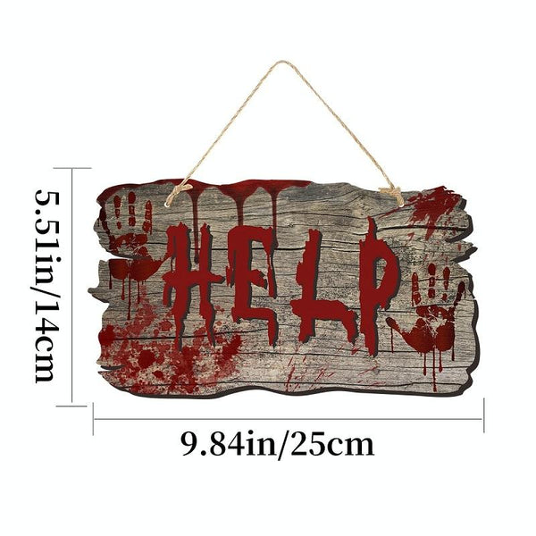 Halloween Door Sign Haunted House Horror Atmosphere Decoration, Style: Help Imitation Wood Grain