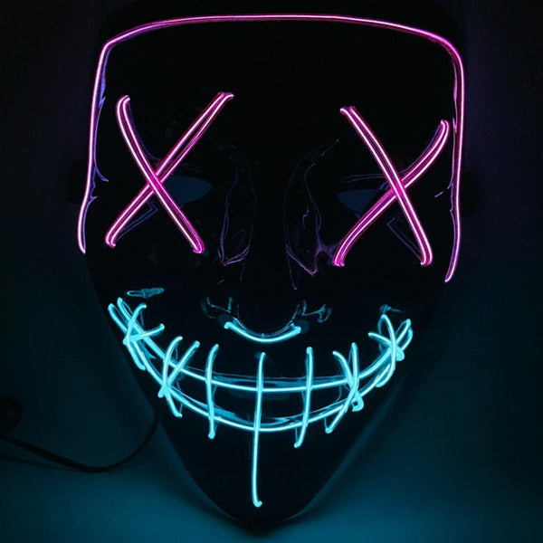 Halloween Festival Party X Face Seam Mouth Two Color LED Luminescence Mask(Purple Blue)
