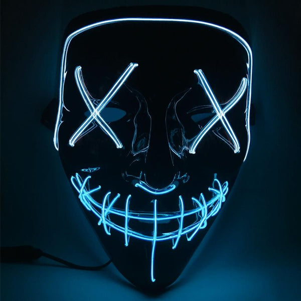 Halloween Festival Party X Face Seam Mouth Two Color LED Luminescence Mask(White Blue)