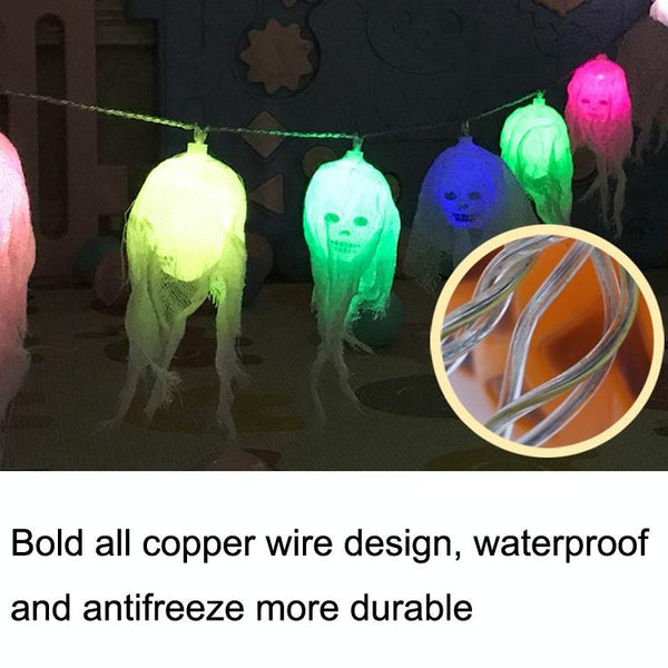Halloween LED White Yarn Skull Ghost Festival Horror Atmosphere Decorative Lights, Style: 5m 20 Lights (White)