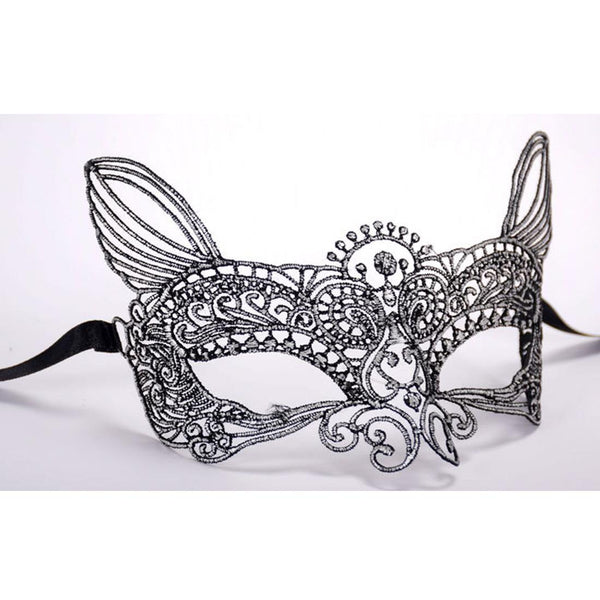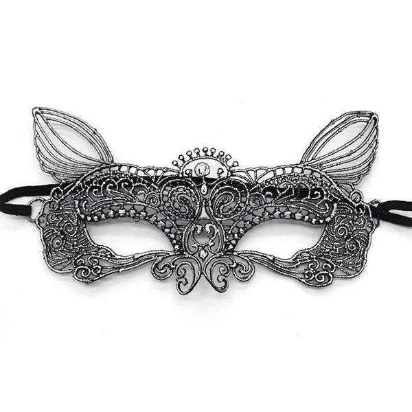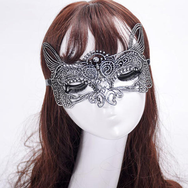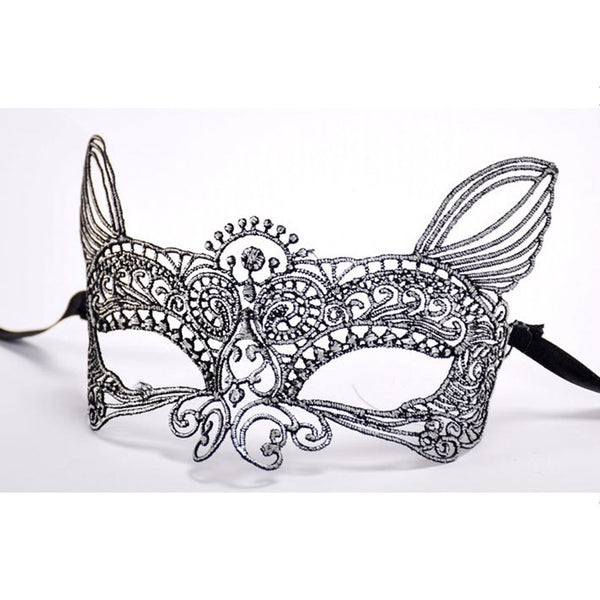 Halloween Masquerade Party Dance Sexy Lady Bronzing Lace Cat King Mask(Silver)