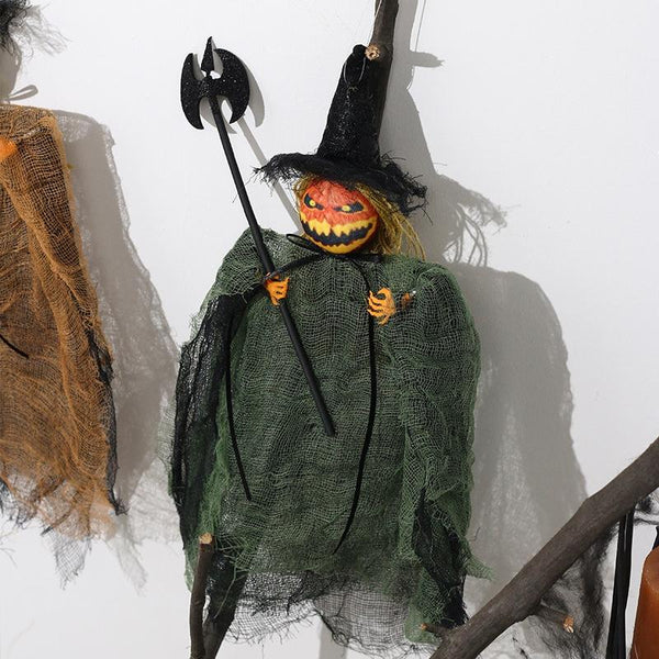 Halloween Terror Pumpkin Doll Pendant Haunted House Party Hanging Ghost Props(Green)