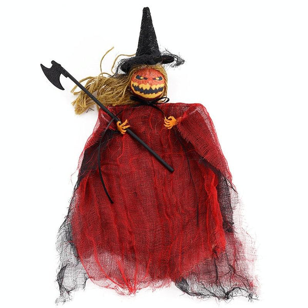 Halloween Terror Pumpkin Doll Pendant Haunted House Party Hanging Ghost Props(Red)