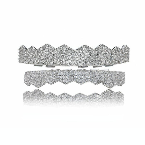 Hip-HopGold-Plated Micro-Inlaid Zircon 8 Gold Braces, Colour: Silver Suit