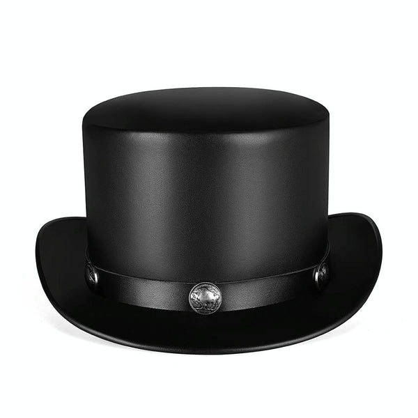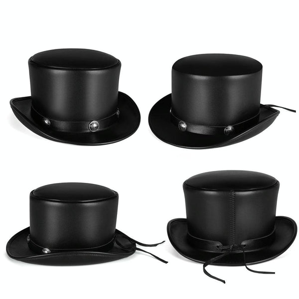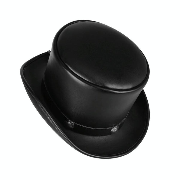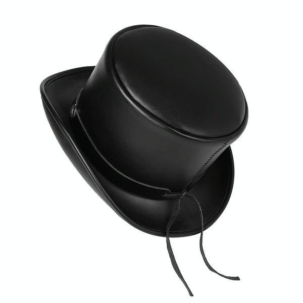 Retro Style PU Leather Round Top Magic Hat Gentleman Party Bow Hat, Size: One Size(Black)