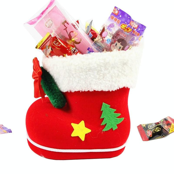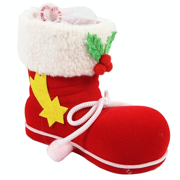 Santa Pattern Christmas Decoration Flocking Stocking Boot Candy Bag, Size: 13cm x 10cm x 7cm