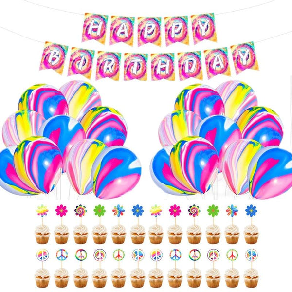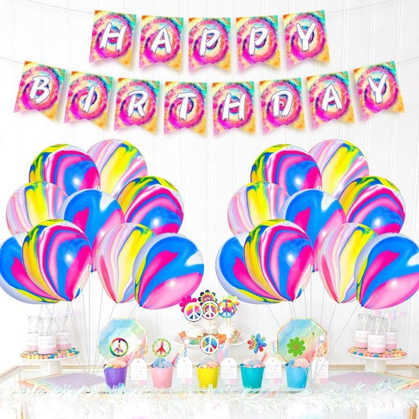 Tie Dye Themed Kindergarten Birthday Party Decoration Set
