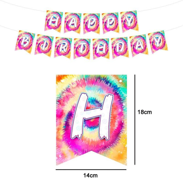 - 1 set of tie-dye themed birthday flags (3 meters)
