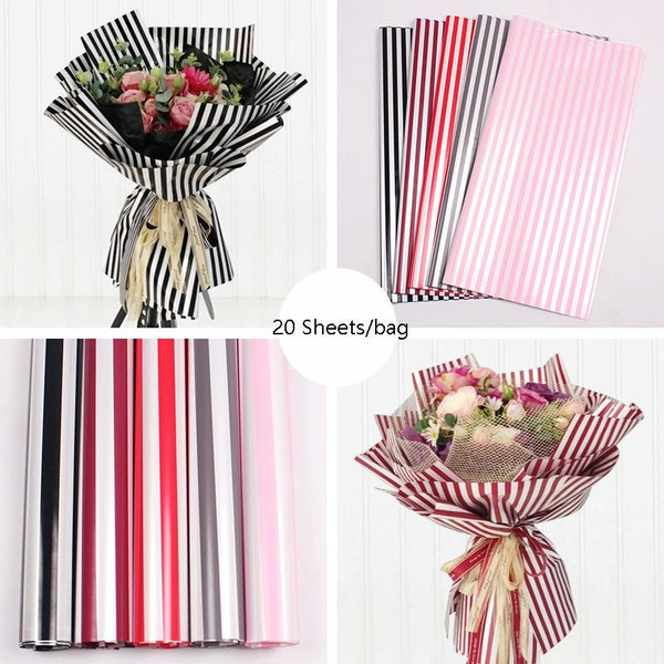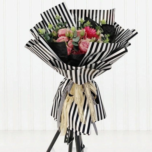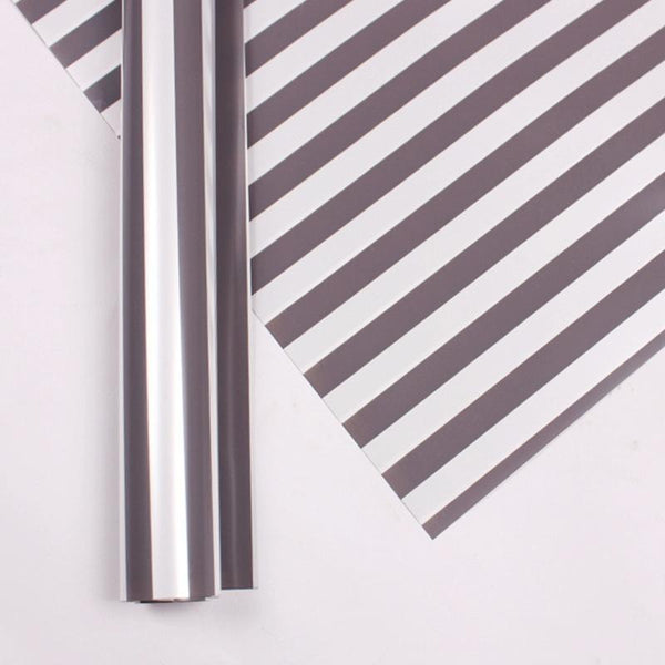 Two-Color Stripes Flower Wrapping Paper Waterproof Gift Wrapping Paper(Silver Gray)
