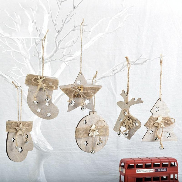 Wooden Cartoon Christmas Tree Ornament Christmas Scene Decoration Supplies(Five-pointed Star)