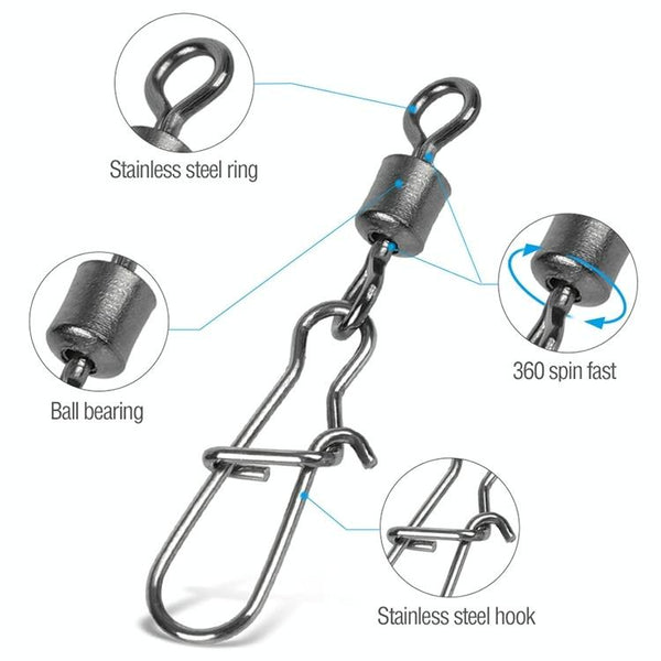 10pcs /Pack Stainless Steel Fishing Connector Bearing Rolling Swivel Connector Fishing Gear Accessories(5(29mm))